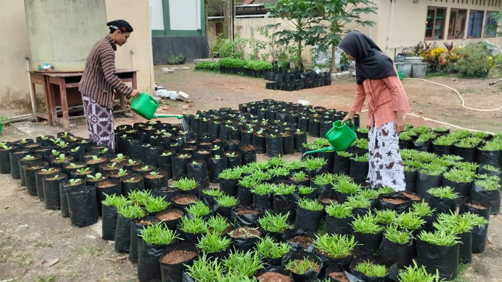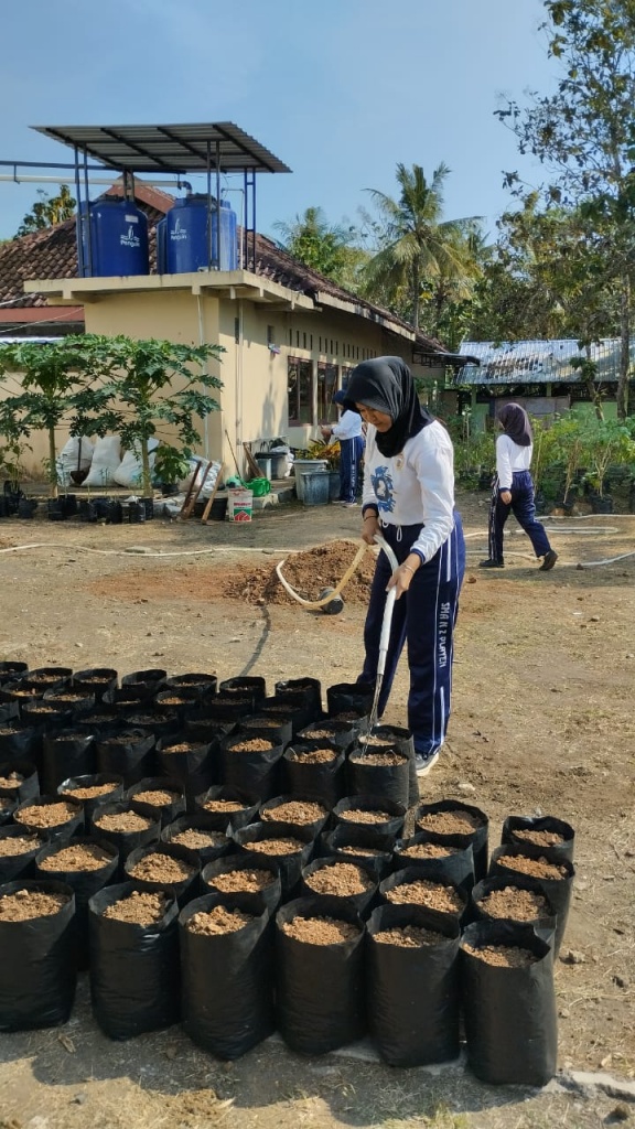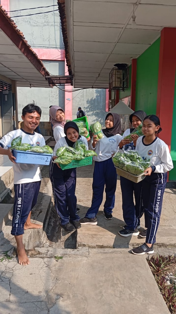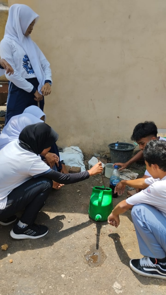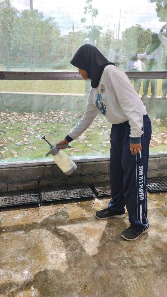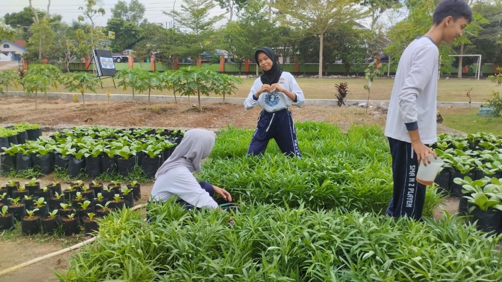 Setelah bibit siap pindah tanam, siswa melanjutkan ke tahap perawatan tanaman sayuran, yang meliputi penyiraman rutin, penyiangan gulma, dan pemantauan hama secara berkala. Dalam kegiatan ini, siswa tidak hanya belajar bertani, tetapi juga menerapkan prinsip pertanian ramah lingkungan dengan menggunakan Pupuk Organik Cair (POC) hasil olahan sendiri dari limbah dapur dan sisa bahan organik.