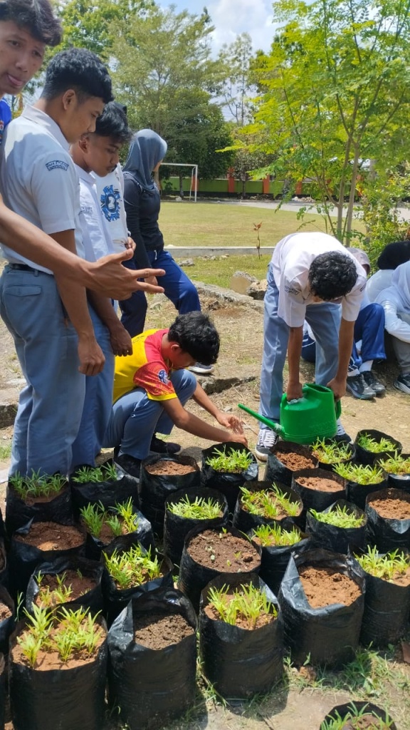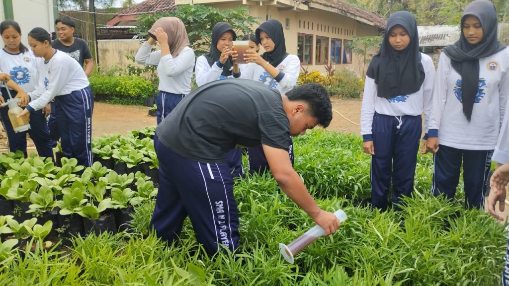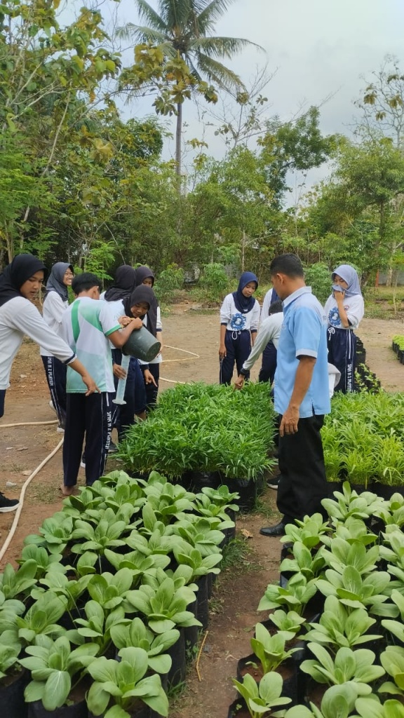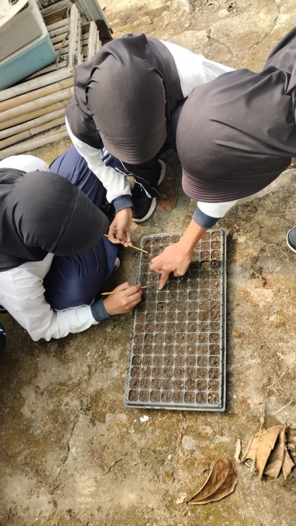 Kegiatan praktik dimulai dengan penyemaian benih sayuran, seperti sawi pakcoy, kangkung dan bayam. Para siswa belajar memilih benih unggul, menyiapkan media semai dari campuran tanah, kompos, dan sekam bakar, serta menjaga kelembaban agar benih tumbuh merata.